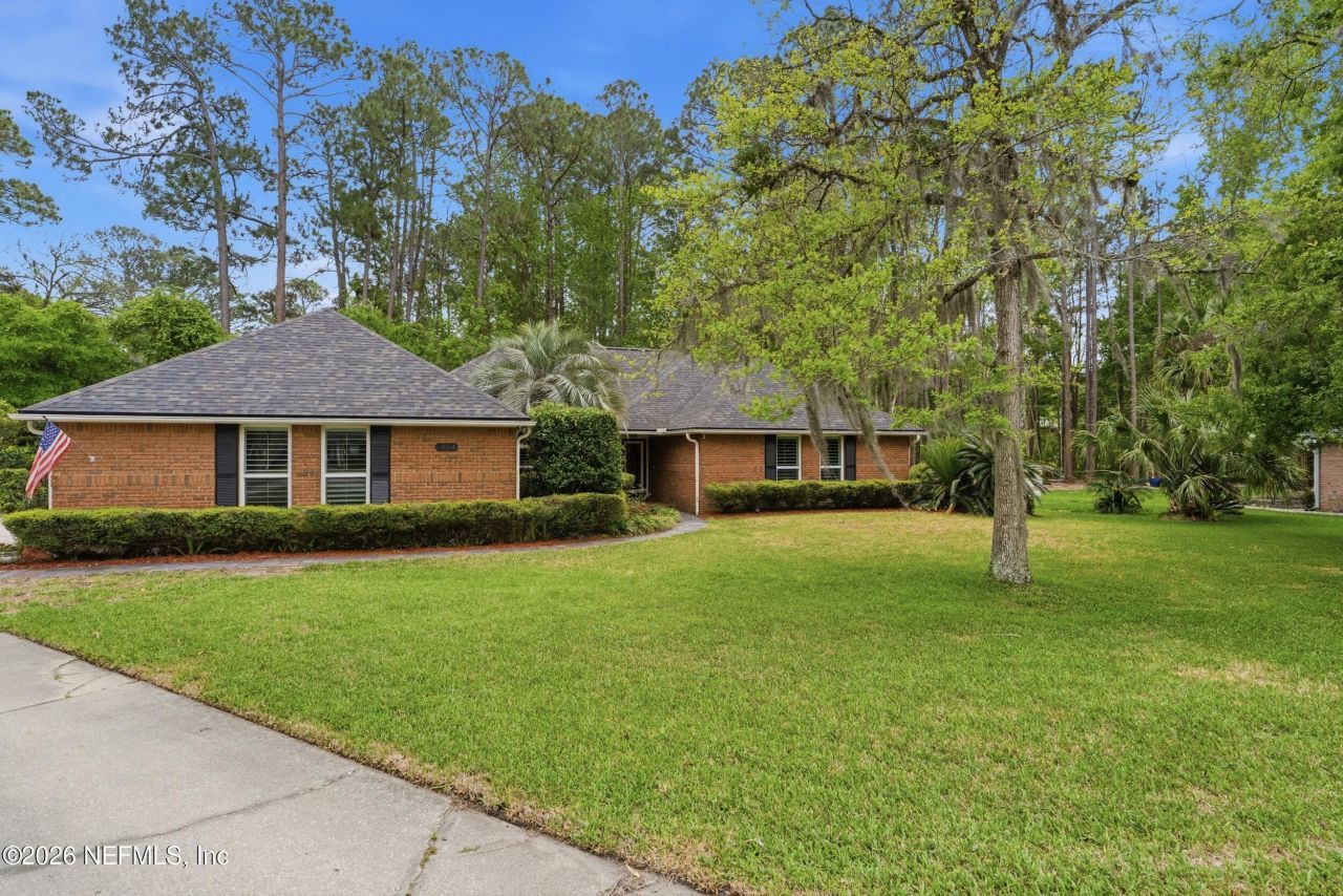 Welcome to 1824 St. Lawrence Way, tucked away on a private .54-acre cul-de-sac lot with no HOA or CDD, in the heart of Mandarin...one of Jacksonville's most beloved areas known for its majestic oak trees, rich history, and timeless charm! This unique property features a 3BR/2BA main home with a dedicated office, PLUS a detached, fully equipped 1BR/1BA guest house complete with a kitchen and 2-car garage....ideal for multi-generational living or income potential. Inside, you'll find an updated kitchen with quartz countertops and refinished cabinetry, plantation shutters, a beautifully renovated primary bath, and a custom-designed primary closet system. Every detail has been thoughtfully enhanced for both comfort and style! Step outside to your private backyard retreat, featuring a heated saltwater pool, screened enclosure, summer kitchen, and a serene, tree-lined setting. An oversized driveway offers ample parking, with plenty of room for RV and boat storage...bringing both convenience and flexibility to your lifestyle. Recent high-value improvements include a new roof (2025), HVAC (2021), new windows (2020), and a new pool pump and salt cell (2025). This is the home you've been waiting for.