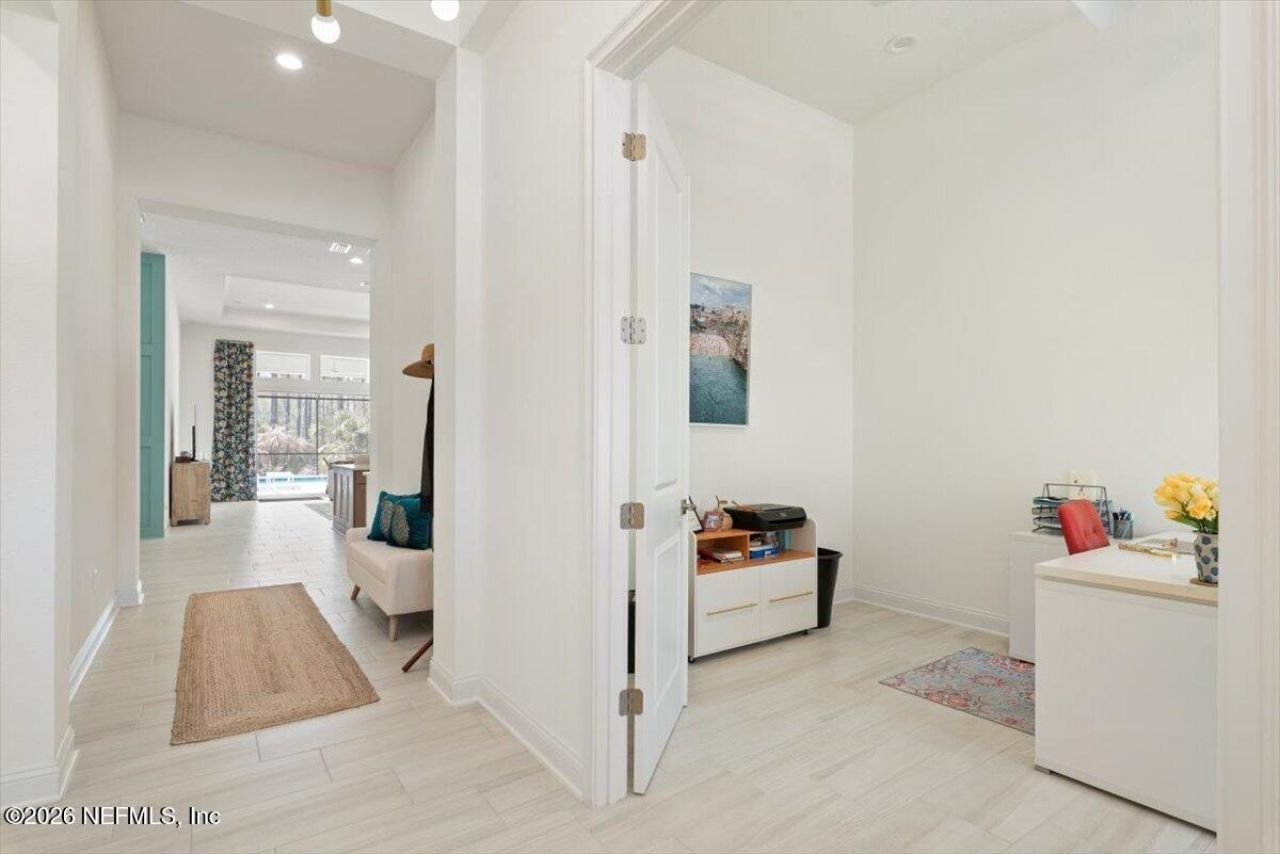 Welcome to 431 Palm Crest Drive, a beautifully appointed ICI Homes Costa Mesa floor plan in the highly sought-after Palm Crest community of Nocatee. This home showcases exceptional upgrades, quality finishes, and thoughtful details throughout.From the moment you step inside, you'll notice the expansive feel created by large-format tile flooring throughout, dramatic custom light fixtures, and a striking accent wall in the dining room. Natural light fills the home, complemented by high-efficiency DC fans that enhance comfort in every room.The kitchen is a true focal point, featuring premium countertops, a custom tile backsplash that extends to the ceiling, double-stacked cabinetry with glass display and lighting, under-cabinet lighting, pull-out shelving, a Kohler composite sink, and upgraded LG appliances including a combo microwave/oven with air fryer functionality. The nearby laundry room is equally impressive, offering built-in cabinetry, a sink, and front-load LG washer and dryer. The primary suite provides a relaxing retreat with a custom closet organization system and a beautifully finished bathroom featuring full-height tile, niches, and a custom walk-in shower with dual shower heads and a bench. Additional bathrooms continue the elevated finishes with floor-to-ceiling tile and upgraded details.A pocket door creates a private guest suite with direct access to the lanai, ideal for visitors or extended stays. Everyday convenience is enhanced with a custom built-in mudroom bench, while smart features such as a front door lock, doorbell, and lanai camera add ease and security.Outdoor living is just as impressive, with a heated pool, full screen enclosure, and extended lanai with a privacy wall. The built-in summer kitchen includes a Blaze gas grill, sink, and refrigerator, perfect for entertaining. The backyard is further enhanced with low-voltage landscape lighting, a drip irrigation system, and a Rachio smart irrigation controller.Additional features include a whole-house water filtration and softener system, EV charging outlet, upgraded attic insulation, a utility sink in the garage, and a relocated AC compressor positioned with the pool equipment for reduced noise.Located in one of Nocatee's premier neighborhoods, this home offers convenient access to top-rated schools, scenic trails, and world-class amenities, all just minutes from shopping, dining, and the beach.431 Palm Crest Drive is a standout home with extensive upgrades and exceptional attention to detail throughout.