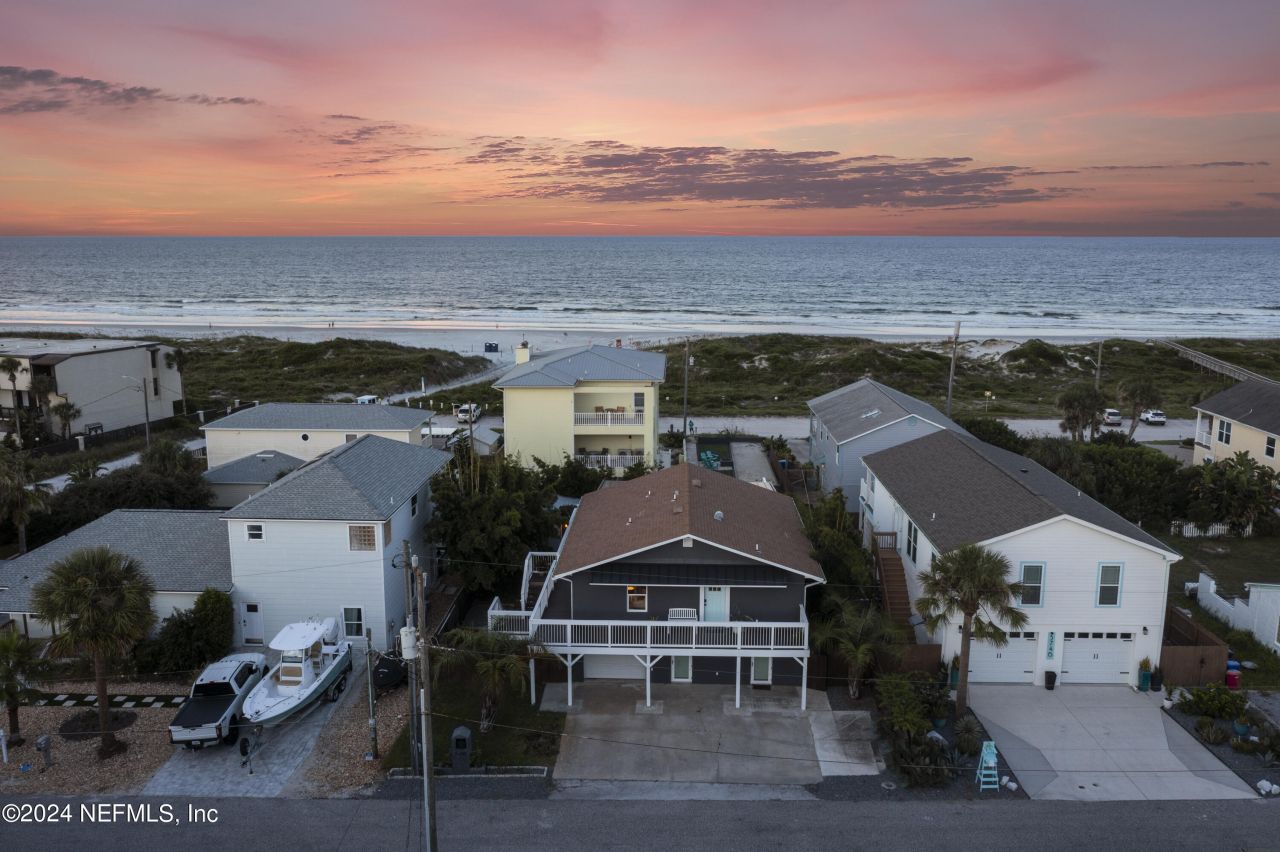 Some properties check a box or two. This one checks every single one. Set on a rare street to street lot running from Rudolph to Gloria on Anastasia Island, this solid concrete block home sits at a high elevation with exceptional dune protection and unobstructed Atlantic views that stop you in your tracks. Two fully independent units, each with two bedrooms and two bathrooms and their own private entrance, make this property equally compelling as a primary residence, a multigenerational compound, a vacation retreat, or a proven income producing investment. The upper level is the crown jewel. An open concept great room flows seamlessly from the gourmet kitchen through the dining and living areas and out to a rear deck where the Atlantic becomes your backdrop. The kitchen is anchored by a large granite island, custom tile work, and premium appliances. Outside, a hot tub, grilling station, and panoramic ocean vistas make the deck an extension of the living space rather than an afterthought. The ocean facing primary bedroom paired with its spa caliber en suite, soaking tub, and double glass enclosed shower is in a category of its own. The current owners use this level as their personal retreat and have rented only one bedroom while keeping the primary bedroom locked off entirely. The upside for a new owner willing to put both bedrooms into rotation is significant. The ground floor unit stands beautifully on its own. Polished concrete floors, an open kitchen and living layout, two well appointed bedrooms, and stylish bathrooms create a space that feels both modern and inviting. It has been a consistent and reliable performer as a short term rental. Beyond the two units, the property includes a regulation bocce ball court, a spacious garage with ample room for vehicles and all your beach gear, and a detached storage unit with its own mini split system that works perfectly as a private home office or climate controlled storage.Two outdoor showers, two private entrances, one extraordinary location. This is Anastasia Island living at its finest. Schedule your private showing today.